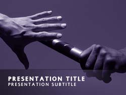Template Description The Relay PowerPoint template in purple shows the hand of a man handing a baton onto his colleague. The Relay PowerPoint template is the perfect PowerPoint template for any athletics, olympics, track and field, sporting event, teamwork, kickoff, or relay PowerPoint presentation.