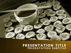 Template Description The Sushi PowerPoint template in yellow shows several sushi maki rolls together with chopsticks with a bowl of Japanese soy sauce or shoyu. The Sushi Microsoft PowerPoint Template Design is the ideal ppt template for any sushi bar, sushi restaurant, sushi-maki, California rolls, Japanese restaurant, Japanese cuisine or sushi powerpoint presentation.